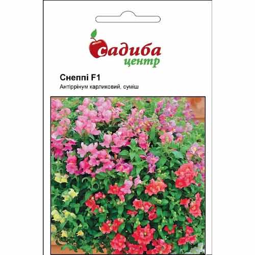 Антірінум Снеппі F1 – суміш різнобарвних компактних сортів, висота яких складає 20-25 см, а ширина – всього 15-20 см. Напівмахрові бутони зібрані у суцвіття, які розпускаються майже одночасно на початку літа. Це чудовий варіант для прикраси балконів та лоджій, посадки у вазони, оформлення бордюрів та клумб. Він добре гармонує із петуніями, айстрами та чорнобривцями.