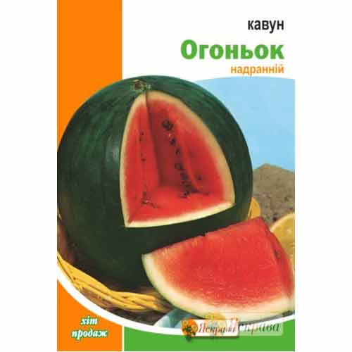 Кавун Вогник - це скоростиглий сорт, адаптований до вирощування в помірному кліматі і навіть в Сибіру. Один з найбільш затребуваних і старих сортів - виведений в інституті овочівництва в 1960 р. Рослина характеризується своєю невибагливістю, стійкістю до хвороб, тонкою шкіркою і дуже смачною, ніжною м'якоттю.