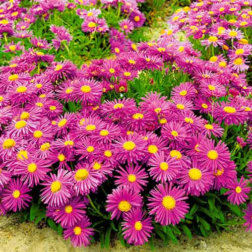 Айстра альпійська Розеа – кореневищний багаторічник із зворушливими рожевими квітками до 4 см в діаметрі. Зовні вони нагадують ромашку та мають таку саму жовтеньку серединку. Стебла прямостоячі, до 25 см заввишки, кущики компактні, не розвалюються під час цвітіння. Бутони починають розпускатися в червні, пік декоративності розтягнутий на місяць. Зелень яскрава, зберігає свій колір навіть під сніговим покривом. Купуйте кореневища айстри альпійської Розеа для висадження невеликими групами посеред газону, в альпінаріях та кам'янистих садках.