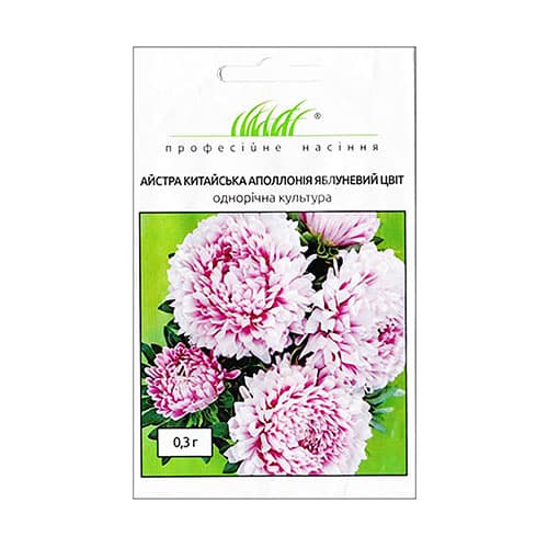 Айстра Аполлонія Яблуневий цвіт — однорічна хрізантемоподібна квітка, що відрізняється тривалим і рясним цвітінням. Суцвіття у рослини дуже великі (близько 10 см). Одночасно можуть розкритися понад 10 ніжних біло-рожевих квіточок.