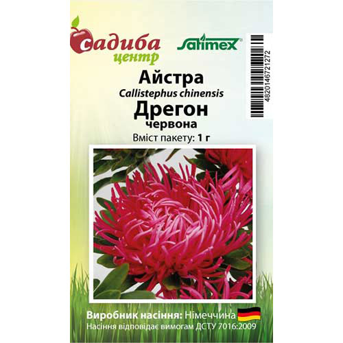 Айстра Дрегон червона – дуже виразна культура із бутонами незвичайної форми. Пелюстки трохи скручені зверху і загнуті до центру. Діаметр квітів складає 10-12 см. Кущі середньої висоти (65-75 см), розгалужені, тому на них формується багато квітів. Сорт підходить для зрізки, добре транспортується за рахунок міцних стебел. Чудово виглядає у монопосадці та поряд із пастельними сортами.