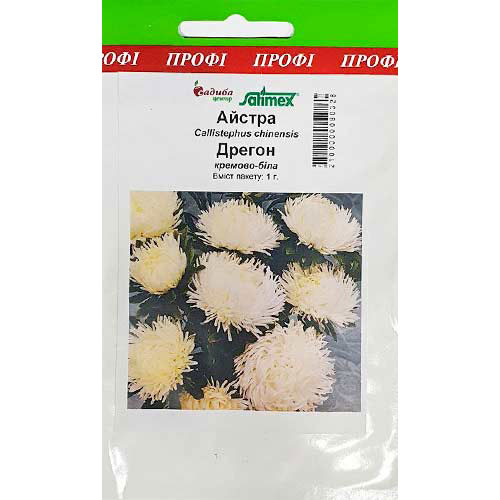 Айстра Дрегон кремово-біла – дуже елегантний однорічник із пелюстками незвичайної форми. Вони скручені в трубочки, а середні ще й загорнуті до центру. Діаметр бутонів складає 10-12 см. Кущі гіллясті, пірамідальної форми. Їх висота складає 65-75 см. Айстра прикрасить вашу ділянку, з неї виходять чудові святкові букети. Стебла у неї міцні, тому не ламаються при транспортуванні.