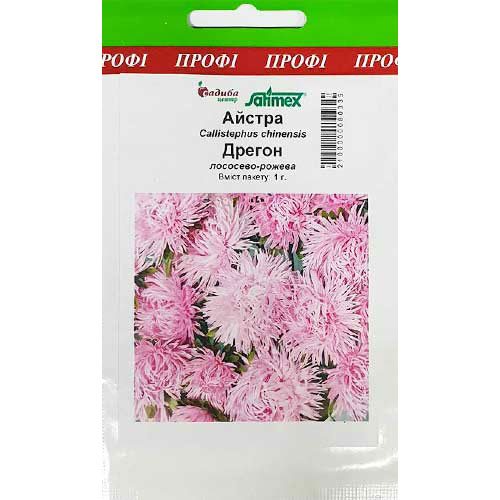 Айстра Дрегон лососево-рожева – дуже декоративна квітка із бутонами незвичайної форми. Її зовнішні пелюстки трохи закручені зверху, а внутрішні – загнуті до центру. Діаметр квітів чималенький – 10-12 см, а висота гіллястого куща сягає 75 см. За рахунок міцних стебел квітка добре транспортується, довго стоїть у зрізці. Її розміщують у квітниках та на клумбах як самостійно, так і у компанії із контрастними сортами.