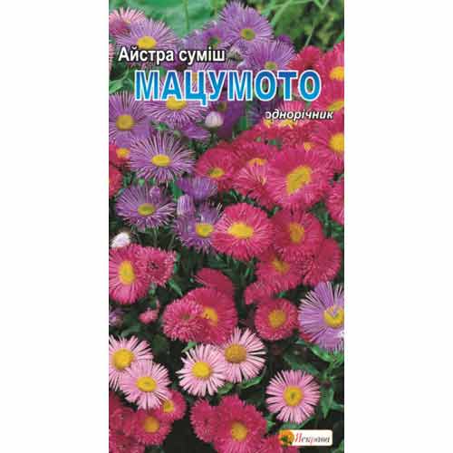 Айстра Мацумото – це популярна однорічна квітка, яка росте компактним прямим кущем висотою до 60 см. У пакеті зібране насіння різних забарвлень, щоб клумба виглядала максимально яскраво та цікаво. Квітки в основному середнього розміру, до 4-6 см в діаметрі. Рослина рясно цвіте з середини серпня до перших заморозків.