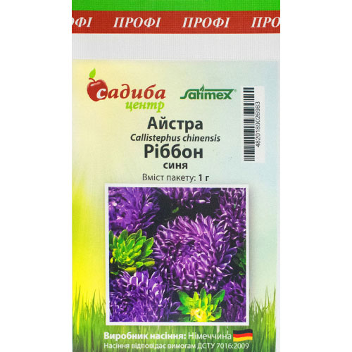 Астра Ріббон синя - дуже красива піоновідна рослина. У період цвітіння на ній з'являються незвичайного кольору суцвіття, які досягають в діаметрі до 10 сантиметрів. Компактний кущ має потужні квітконоси до 30 сантиметрів у висоту. Цвітіння відрізняється більш ранніми, але тривалими термінами. Замовляйте насіння айстри в нашому інтернет-магазині з доставкою поштою і без передоплати.