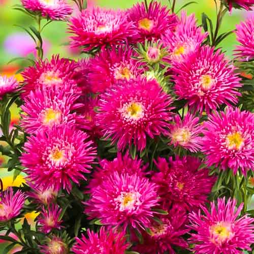Астра Сі Старлет яскраво-червона-розлогий кущ (50-60 см у висоту), увінчаний шапками квітів від 9 до 12 см в діаметрі. Сорт відомий незвичайним суцвіттям: трубчасті пелюстки складають середину, зовнішні пелюстки, немов довгі промінчики сонечка, оточують її. Спосіб вирощування універсальний: через розсаду і посів в незахищений грунт.