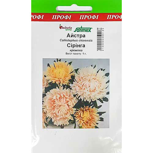 Айстра Сірінга кремова – дуже ніжний найновіший сорт із великими суцвіттями. Їх діаметр становить щонайменше 12 см. Кущі пірамідальної форми витягуються до 60-70 см. Сорт вигідно відрізняється від усіх інших видів айстр тим, що найдовше стоїть у зрізці. Але його не обов’язково вирощувати лише для цього – айстри довго прикрашатимуть ваші ділянки і у монопосадках, і поряд з іншими контрастними культурами.