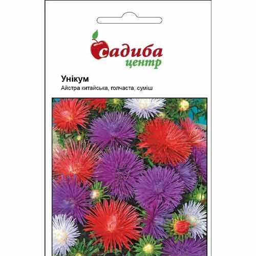 Айстра Унікум – суміш яскравих однорічників, які подарують вам гарний настрій під час цвітіння з серпня і до самих заморозків! Кущи виростають широкими та гіллястими, до 60 см заввишки. На кожному з них формується 10-14 суцвіть. Вони великі, діаметром понад 10 см, мають кулясту форму та голчасті пелюстки. Айстра добре росте у відкритому та закритому ґрунті, підходить для створення букетів.
