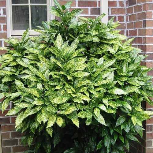 Аукуба японська – ефектний багаторічник для домашнього вирощування або культивації в контейнерах. Зростає він повільно, в дорослому віці досягає 1 м. Листя велике, з глянсовим блиском й зубчастим краєм. На яскраво-зеленому фоні густо розсипані сонячно-жовті плямочки. Квітне культура маленькими світлими квіточками. На жіночих рослинах формуються яскраво-червоні овальні ягоди.