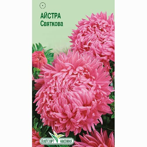 "Астра Святкова - однорічна рослина заввишки 50-60 см. Суцвіття різноманітного забарвлення, плоскоокруглі, діаметром 6 см.
