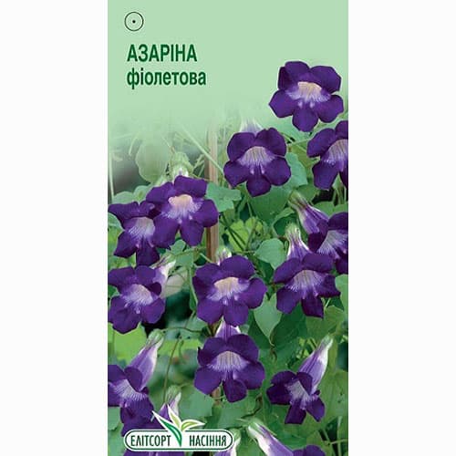 Азаріна фіолетова – однорічна рослина. Кущ кучерявий, висотою до 350 см. Квітки до 3 см завдовжки, фіолетового забарвлення. Насіння висівають у лютому-березні в горщики та вирощують розсаду. Перед сівбою рекомендується прогріти та замочити. При температурі 18-22 ° С сходи з'являються на 16-20 день. Рослини висаджують на постійне місце наприкінці травня, коли мине загроза заморозків. Добре росте на відкритих сонячних ділянках з живильним ґрунтом. Використовують переважно для озеленення будівель, балконів, терас, альтанок.