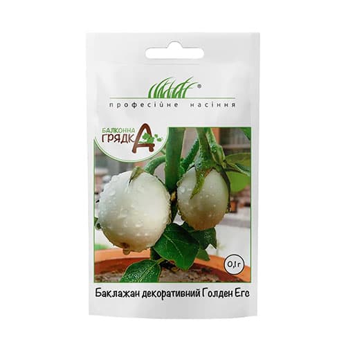 Баклажан декоративний Голден Егс - гарний сорт горщика баклажана, формує кущ 30-50 см, рясно покритий фіолетовими квітами, які перетворюються на компактні плоди, масою 80-100 г. Плід, при дозріванні, змінює колір від білого до жовтого і при відповідних умовах залишається на рослині тривалий час. Баклажани ідеально підходять для вирощування у вуличних контейнерах та горщиках на підвіконнях. Насіння краще висівати у березні, а при додатковому освітленні можна сіяти вже взимку.