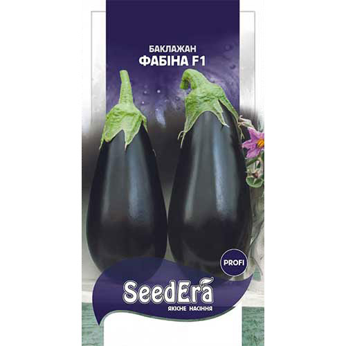 Баклажан F1 Фабіна - ранній гібрид баклажана, період вегетації якої становить 70 - 90 днів після висадки розсади на постійне місце. Для вирощування у відкритому і закритому грунті. Має хорошу стійкість до вертицильозного в'янення. Формує кущ відкритого типу, який досягає у висоту 45 - 60 см. На кожній рослині одночасно зав'язується по 6 - 8 плодів. Плоди подовжено-циліндричної форми, фіолетового забарвлення з гладкою блискучою шкіркою. Маса плоду 200 - 350 г, довжина 20 - 23 см. М'якоть білого забарвлення з зеленим відтінком, дуже щільна, без ноток гіркоти. Використовують для переробки та реалізації на ринку свіжої продукції. Урожайність гібрида становить 6 кг / м².