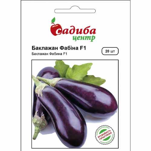 Баклажан Фабіна F1 – дуже ранній та врожайний гібрид. Формує кущі до 45-60 см заввишки, на яких одночасно з’являється 6-8 плодів. Вони мають циліндричну форму, довжину 20-23 см, діаметр 5-6 см. Шкірка тоненька, зеленувато-біла м’якоть без гірчинки.