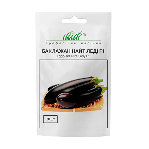 Баклажан Найт Леді F1 - середньоранній гібрид гідно оцінили садівники за високу врожайність як на відкритих ділянках, так і під плівковим укриттям або в теплиці. Ідеально підходить для вирощування у південних регіонах України, оскільки має гарну переносимість високих температур та посухи. Сорт відрізняє густе темно-фіолетове забарвлення плодів вагою 180-200 гр. з подовжено-довгастою формою та блискучою поверхнею. Зрілість плоди набирають за 45-50 днів. Гібрид активно пручається патогенному бактеріозу, гнильним проявам, атакам шкідливих паразитів. Агротехнічні заходи у вегетаційний період стандартні – полив, підживлення та розпушування ґрунту. При кулінарній обробці, консервації та запіканні має відмінний смак без гіркуватості. Лежкість плодів висока, що дозволяє транспортувати та зберігати плоди без шкоди товарності.