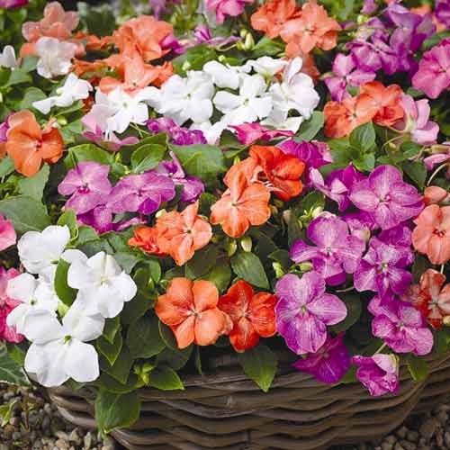 Низькорослий бальзамін садовий не витягується більше 25-30 см. Його кущики нагадують різнокольорові піраміди. Стебла м'ясисті і міцні, на них «сидять» великі камелієподібні бутони, діаметром до 5 см. Квітки махрові, розташовані вздовж пагонів у пазухах листків. Купуйте насіння низькорослого садового бальзаміну і прикрашайте ним клумби, бордюри і квітники, садіть у вазони. Культура гармонійно виглядає поряд з флоксами, чорнобривцями та гвоздиками.