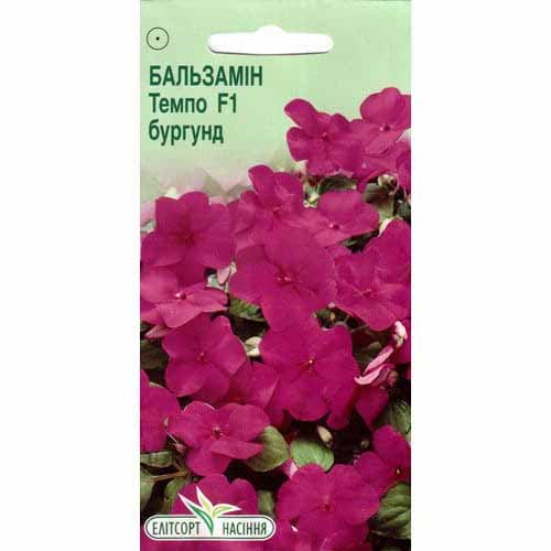 Бальзамін Темпо бургунд - однорічний гібрид. Стебло у рослини випростане, висотою 25-30 см. Квітки до 4 см в діаметрі. Бальзаміни широко використовуються в різних видах квіткового оформлення, підходять для балконів, лоджій, терас. Можна висаджувати в рабатках, на клумби, в квіткові вази, групами на газоні. Вони рясно цвітуть протягом усього літа.