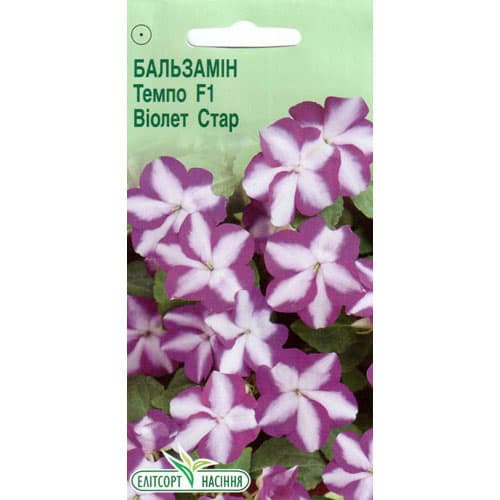 Бальзамін Темпо Віолет Стар - красивий однорічний гібрид. Стебло у рослини прямостояче. Висота рослини 25-30 см. Квітки діаметром до 4 см. Бальзаміни широко використовують для декорування балконів, лоджій, терас. Можна висаджувати в рабатках, на клумби, в квіткові вази, групами на газоні. Вони рясно цвітуть протягом усього літа.