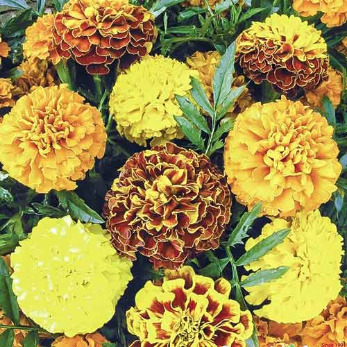 Замовте суміш забарвлень чорнобривців Маленький герой, ароматні симпатичні кульки не дадуть засумувати з приходом осені.