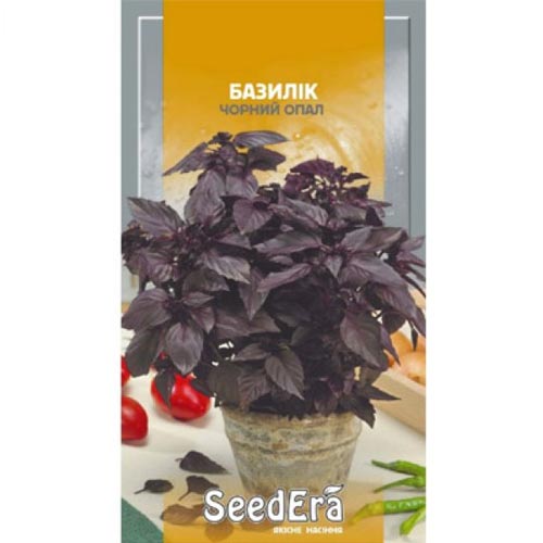 Базилік фіолетовий Чорний Опал – це великолистовий середньостиглий сорт з сильним ароматом і специфічним смаком. Його великі темно-фіолетові листочки мають глянсовий блиск. Однорічник вирізняється розгалуженою формою кущика і досягає висоти 30-50 см. Вирощувати можна на садовій ділянці і в ящиках на підвіконні. Багата корисними ефірними маслами культура використовується у свіжому і сушеному вигляді.