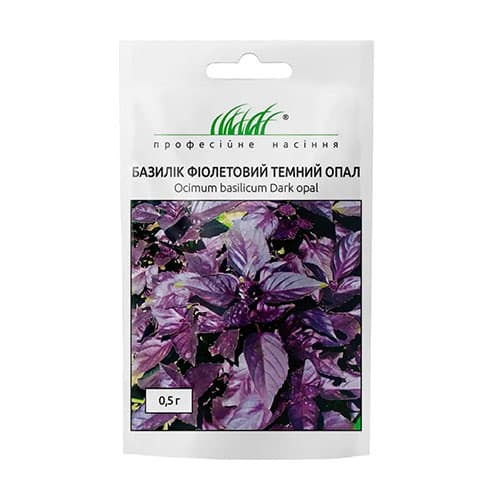 Базилік фіолетовий Темний опал – однорічна рослина висотою від 35 до 40 см і діаметром до 75 см. Листя овальне, середнього розміру, темно-фіолетове. Воно використовується окремо або в складі сумішей як спеція до страв з риби і м'яса, а також для ароматизації томатних соусів і маринадів, при консервації овочів. Замовте насіння базиліка фіолетового Темний опал в магазині «GradinaMax» – насолоджуйтеся насиченим смаком кавказьких прянощів цілий рік: засушіть листя або збирайте його з горщика на підвіконні.