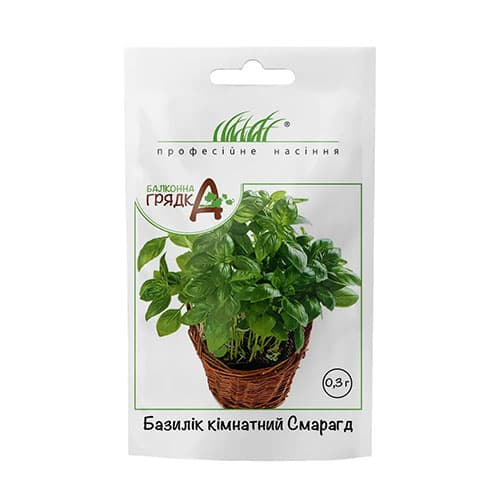 Базилік кімнатний Смарагд відрізняється своїм надзвичайно гладким і блискучим листям. Зелень урізноманітнює будь-яку страву завдяки своєму пікантному присмаку. Аромат у листя запашний, схожий на запах перцю. Невеликі кущики, висота яких сягає не більше 30 см, можна виростити просто у себе на підвіконні. Рослина чудово впишеться серед інших декоративних культур.