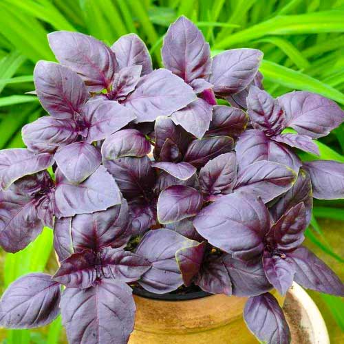 Велике листя базиліка прикрасить ваше блюдо не тільки кольором, але і смаком. Воно прекрасно підходить для рибних і м'ясних страв, додає пікантного відтінку консервованим овочам, незамінне при ароматизації маринадів і соусів. Хочете надати страві оригінального смаку? Купуйте насіння базиліка червоного Гвоздикового!