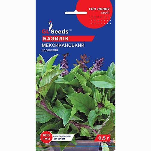 Базилік коричний Мексиканський – пряна рослина з теплим ароматом кориці. Кущ компактний, висотою до 40 см, листя гладке, світло-зеленого кольору, з пурпуровими прожилками. Посів роблять навесні, рекомендовано вирощувати розсадним способом. Прекрасно росте як у відкритому ґрунті так і в захищеному, зокрема, росте в горщиках та контейнерах, як багаторічна рослина на підвіконні. Обов'язкові регулярний полив та мульчування ґрунту навколо рослини. Використовують як приправу до фруктових салатів, добре поєднується з м'ясними та рибними стравами, надає оригінальний аромат освіжаючим напоям та випічці.