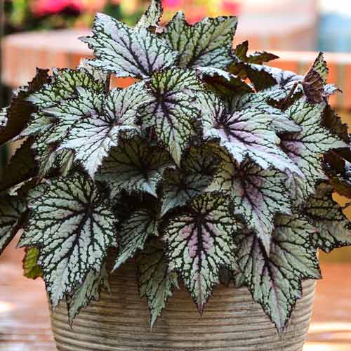 Бегонія Грифон F1 – унікальний сорт бегоній для вирощування в контейнерні чи вазоні. Оригінальне велике листя схоже за формою на кленове. Насичено-темна зелень, наче затонована перламутром, прикрашена розсипом дрібних діамантових крапочок. Основні жилки мають інтенсивно-зелене забарвлення – виглядає дуже яскраво та незвично. Поспішайте придбати насіння бегонії Грифон F1 – сорт користується підвищеним попитом.