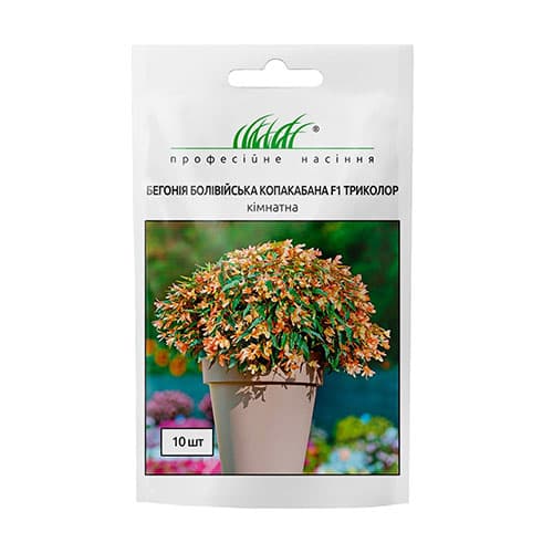 Бегонія Копакабана триколор F1 - бегонія має дивовижні дзвінчасті квітки, розмір квітки 6-7 см, висота рослини в квітниках 35 см. Толерантна до широкого діапазону умов вирощування: посуха, дощів, сонця і тіні. На відміну від інших сортів бегоній, чудово почувається на повному сонці. Це значно розширює можливість використання. Ідеально підходить для великих підвісних кошиків, контейнерів та клумб. Молоді рослини спочатку прямостоячі, а потім виробляють велику кількість бічних пагонів. Вони створюють невеликий звис у контейнерах та кошиках. Зростання в клумбах - стеляться.