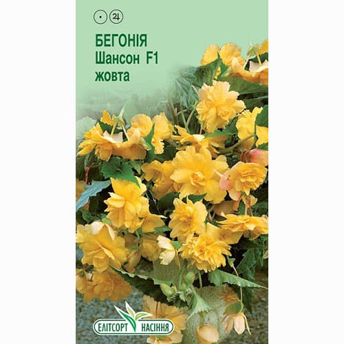Бегонія Шансон Жовта F1 - багаторічна рослина, що часто використовується як однорічник. Є рясно і тривало квітучою рослиною. Чудова великоквіткова бегонія з махровими та напівмахровими квітками жовтого забарвлення, утворює великі бульби, які можна зберігати до наступного сезону. Бегонія чутлива до сонячного світла. Найкраще місце для посадки бегонії – півтінь. Віддає перевагу багатому гумусу легкого ґрунту. Заморозків не витримує. При сівбі бегонії гранули не засипати ґрунтом, а розкласти на ущільненій поверхні і добре зволожити! Сходи з'являються тільки на світлі за температури 21-24°C через 10-14 днів. Потребує регулярного поливу, при цьому не переносить перезволоження ґрунту. Крім кімнатних приміщень широко використовують як ампельну сезонну культуру для оформлення підвісних кашпо, балконних ящиків.
