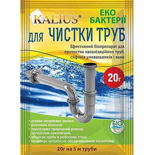 Біопрепарат для прочистки труб - засіб для очищення каналізаційних труб, сифонів. Біопрепарат прочистить засмічення в трубах на кухні, жир, бруд, опади та нарости. Відновлює внутрішній діаметр труби.