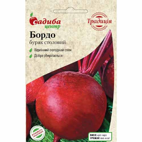 Буряк Бордо - сорт столового буряка для універсальної переробки. Термін дозрівання Вегетаційний 65-115 днів. Має великі плоди, які досягають ваги до 500 г. Усередині має щільну, однорідну м'якоть, яка має безліч корисних речовин. Сік буряка можна використовувати як натуральний барвник. Сорт прекрасно підходить для зимового зберігання.