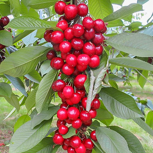 Черешня колоновидна Сем - сорт канадської селекції, який відрізняється темно-вишневими, майже чорними, великими ягідками.