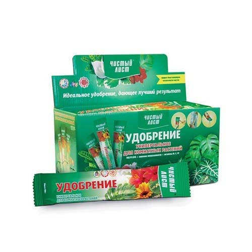 Чистий Лист універсальне для кімнатних рослин – мінеральний комплекс для тих, хто любить зелень в інтер'єрі. Добриво забезпечить повноцінне харчування культурам, підвищить їх опірність хворобам, гнилизні і несприятливим умовам. Допоможе швидко і пропорційно розвиватися надземній частини рослин і зміцнить їх кореневу систему.