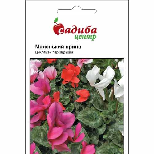 Цикламен Маленький Принц F1 – суміш елегантних багаторічних квіткових культур з оригінальним округлим листям темно-зеленого відтінку, прикрашеним більш світлими плямами та смужками. Малюнок на листі – не вся краса цієї рослини. При цвітінні із середини низькорослої розетки догори підіймаються гордовиті квітконоси з пишними бутонами. Різнокольорові пелюстки відігнуті і здається, що на стеблинки присіли відпочити тисячі метеликів. Цикламени вирощують для прикраси зони патіо, веранд, балконів і підвіконь.
