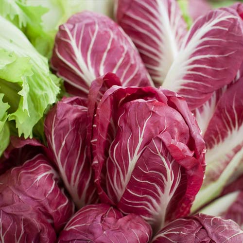Цикорій салатний Ред Бол дуже схожий на звичайну капусту: рослина формує невеликі округлі головки, маса однієї не перевищує 450 г. Хвилясте листя відрізняється оригінальним забарвленням: у центрі темно-червоного листка проходить біла прожилка. Хрусткі плоди мають пікантний смак з легкою гостринкою. Вживання культури позитивно вплине на стан шкіри, адже в ній у великих дозах міститься вітамін А.