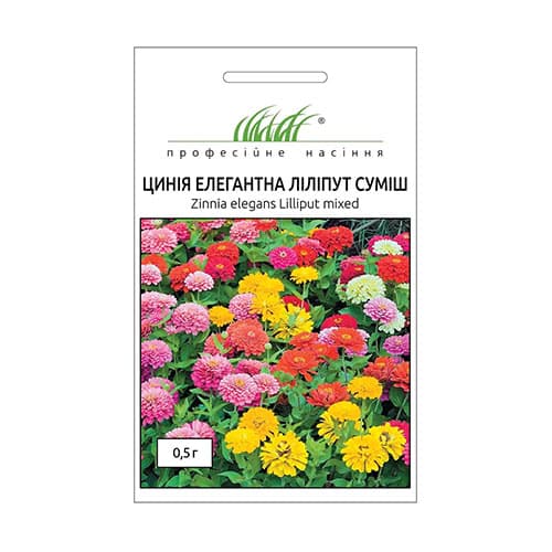 Цинія Ліліпут, суміш забарвлень – набір чарівних компактних однорічників із квітковими шапками яскравих забарвлень. Весела клумба з різнокольорових циній буде довго радувати своєю свіжістю та рясним цвітінням. Невибагливі рослини можна порекомендувати новачкам, насіння майорів велике, його легко сіяти відразу в клумби, тому варто замовити насіння цинії Ліліпут для декорування квітників.