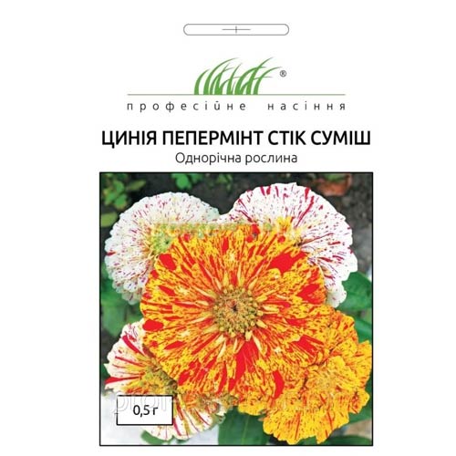 Цинія Пепермінт стік, суміш забарвлень – набір ефектних однорічників зі строкатим забарвленням квіткових шапок. Придбати насіння цинії Пепермінт стік, суміш забарвлень, можна для створення ексклюзивних клумб, для висаджування рослини разом з іншими однорічниками та багатолітниками до клумби і рабаток, дотримуючись співвідношення висот. Майори часто вирощують для букетного зрізання.