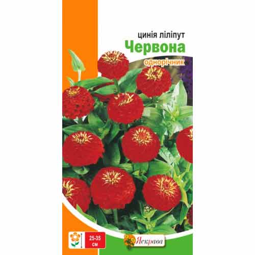 Цинія Ліліпут червона – це мініатюрний різновид квітки, відомої багатьом як майор. Гіллясті кущики висотою 25-30 см прикрашені яскраво-червоними махровими шапочками діаметром не більше 5 см. Кожна квітка майорця тримається на кущі і не в'яне близько місяця. Сорт дає відмінну зрізку і прикрашає сади до заморозків