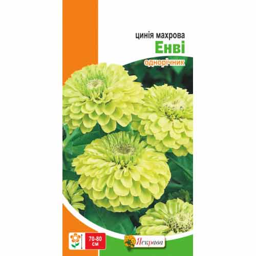 Цинія махрова Енві - оригінальна і граціозна рослина. Зелені не тільки листя, але і махрові квітки стануть справжнім доповненням вашого саду. А при вирощуванні власної розсади з насіння можна буде насолоджуватися цвітінням цинії до самих заморозків. Замовляйте насіння квітів в нашому інтернет-магазині всього за пару хвилин.