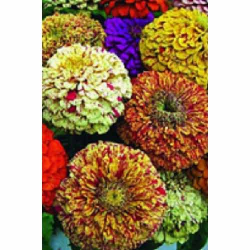 Цинія махрова Пепермінт - яскраві відтінки вашого літа в одному пакетику. Неначе хтось заприскав червону фарбу по жовтих, оранжевих, білих і кремових пелюстках. Рослина приковує до себе увагу багатьох садівників завдяки своєму тривалому цвітінню і невибагливості.