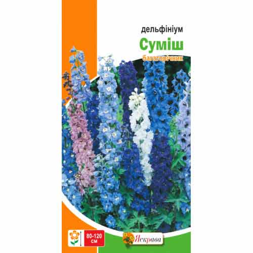 Дельфініум Багаторічний суміш - чудовий спосіб декорувати свою ділянку на багато років вперед. Найніжніші забарвлення - від блакитного, рожевого, білого до темно-синього - будуть сяяти, немов величезні святкові свічки на торті вашої клумби. Ми зібрали для вас найкращі сорти дельфініума багаторічного в одному пакетику насіння. Велич і грація цієї рослини підкорюють серце. Поставте красиві квіти дельфініума у вазу, і він тішитиме вас до 12 днів.