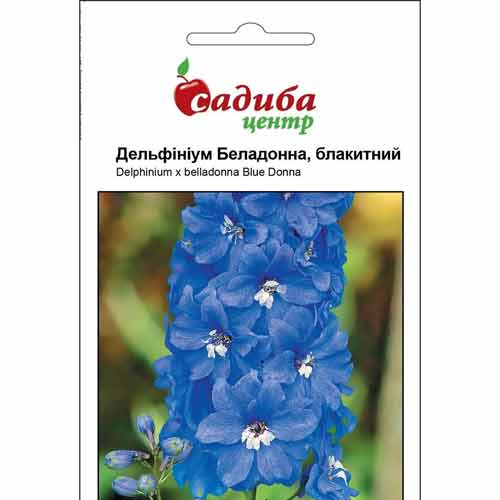 Дельфініум Беладонна блакитний – розкішний багаторічник понад 50 см заввишки. Зацвітає в рік посіву. Випускає довгі стебла, густо усіяні ніжними блакитними бутонами. Цвітіння приходиться на червень – липень, а якщо зів'ялі квітконоси вчасно зрізати, то можна добитися повторного цвітіння у вересні. Замовляйте насіння дельфініуму Беладонна й формуйте клумби кольору піднебіння.