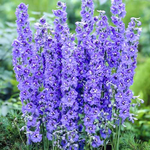 Дельфініум Пацифік Гіант Саммер Скайс – прекрасний високорослий багаторічник (150 см) з насичено-блакитними квітками. Вони зібрані у величезні суцвіття близько 80 см завдовжки. Діаметр кожного бутона сягає 7 см. Пік декоративності приходиться на середину літа. Якщо квітконоси обрізати відразу після цвітіння трохи вище рівня ґрунту, то культура порадує вас бутонами повторно на початку осені. Купуйте саджанці дельфініума Пацифік Гіант Саммер Скайс для розміщення в солітерних посадках та змішаних композиціях, на задньому плані квітників, а також для зрізки.