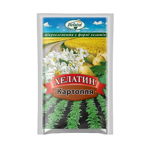 Хелатин Картоплі - універсальне водорозчинне добриво, що містить весь необхідний комплекс мікроелементів у доступній формі, у вигляді хелатів, для росту й розвитку картоплі.