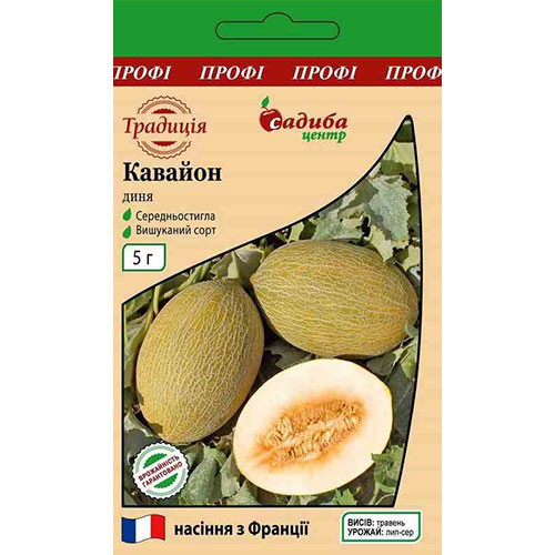 Диня Кавайон – популярний європейський гібрид, який має таку ж назву, як і один з районів Франції. Культура швидко розвивається, за термінами дозрівання відноситься до середніх. На пагонах формуються кулясто-видовжені плоди масою близько 2,5 кг. Шкірка сітчаста, жовто-зелена. М'якоть щільна, ароматна й солодка, може бути забарвлена у пастельну гаму кольорів від рожевого до помаранчевого.