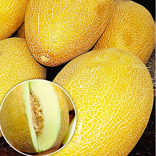 Янтарно-жовта диня з медовою, соковитою м'якоттю. Плід має золотисту шкірку, під якою ховається неймовірно солодка і ароматна серединка. М'якоть має виразний ананасовий присмак з відтінками бджолиного нектару і буквально закінчується запашним соком.