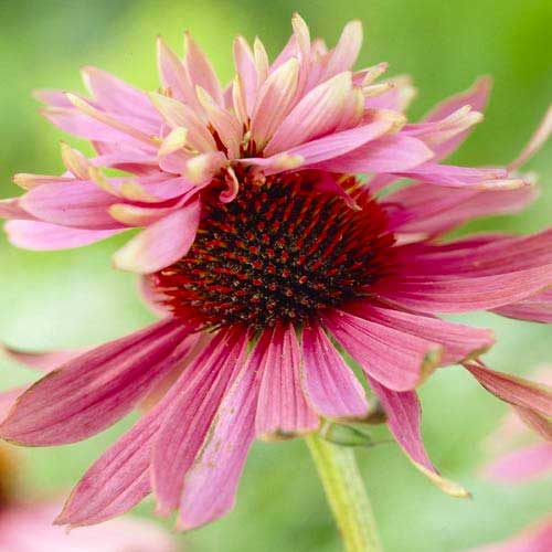 Ехінацея Indiaca - елегантна багаторічна рослина, яка не потребує особливого догляду. Кущ може досягати у висоту 130 см. Квіти елегантні, великі, у формі "ромашки", пурпурного відтінку, немахрові. Сорт можна легко відрізнити від інших - квітка в центрі прикрашена виступаючим "чубчиком" з укорочених пелюсток. Рослина відрізняється відмінною зимостійкістю. Ідеально вписується в групові композиції, можна вирощувати як яскравий акцент.
