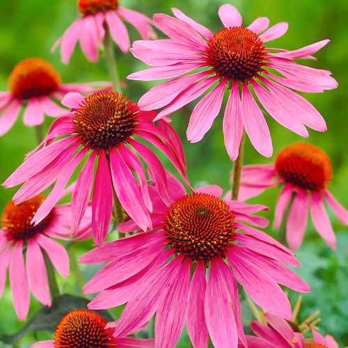 Ехінацея Магнус розпускається в середині літа ромашкоподібними квітами діаметром до 12 см. Подовжені язичкові пелюстки забарвлені в яскраво-рожевий колір з відтінком фуксії. Опукло-ребриста серцевина має червоно-коричневий колір з рудувато-іржавим відливом.